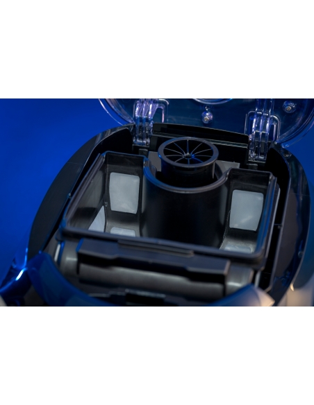 • Confort d'utilisation : le filtre, accessible par le dessus, permet un véritable confort d’utilisation au quotidien. L’évacuation rapide de l’eau facilite la sortie du robot de la piscine. En effet, le by-pass et la grille arrière aident à l’évacuation rapide de l’eau contenue à l’intérieur du filtre.