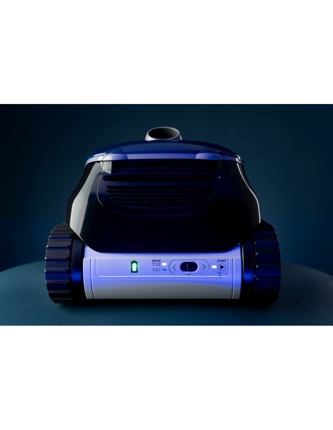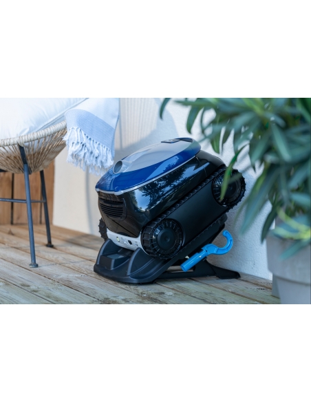 • Conception sans fil hyper maniable : le nettoyeur se déplace sans contraintes, sans risque d'emmêlement du câble ou que celui-ci se prenne dans l'échelle ou d'autres obstacles de la piscine. Il est plus léger et facile à ranger sur sa station de chargement dédiée.